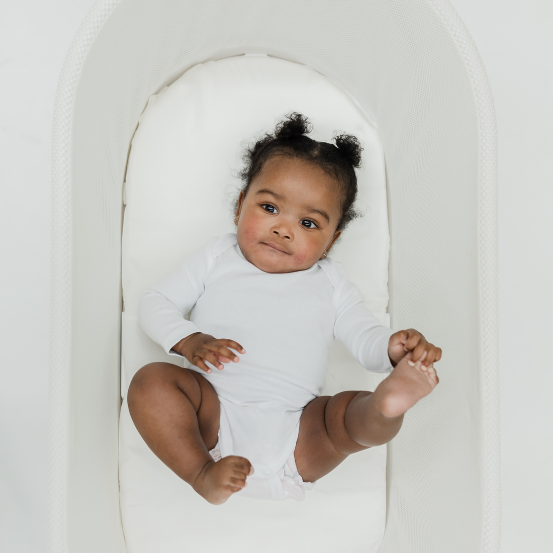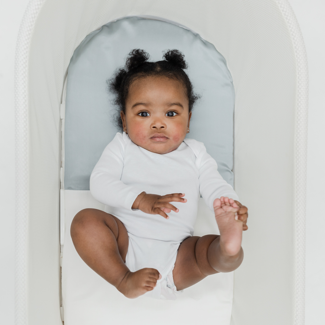 Help prevent baby bald spots, frizz and knotting while baby dreams peacefully in their Snoo with our specifically designed Silk Snoo Sheets. These sheets are the perfect combination of Silk and Cotton with a 100% Mulberry Silk top section and 100% cotton bottom.