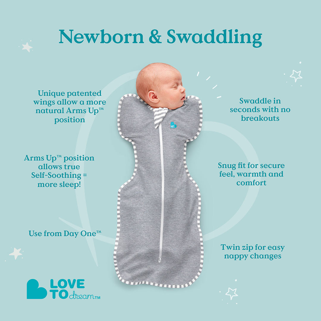 The Love To Dream Swaddle Up All Seasons combines the benefits of traditional swaddles and the ease and safety of a sleepsuit and is the perfect tool to reduce sleepless nights.
