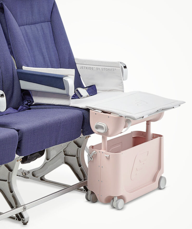 The Stokke® BedBox™ is the world's only ride-on suitcase for children that turns into any seat into bed. This travel essential combines Scandinavian style, aviation-inspired design and practical features to make your journey easier. With this sleep-on suitcase, children from 3-7 years can rest comfortably or nap during both long and short haul flights, plus – there’s ample storage for your child’s must-haves. Once it’s packed, your little one can ride it (or pull it) through the airport terminal, making transport fun and stress-free. After the seat belt light goes off, you can turn the Jetkids™ BedBox™ into a cosy inflight bed in just 5 simple steps.
