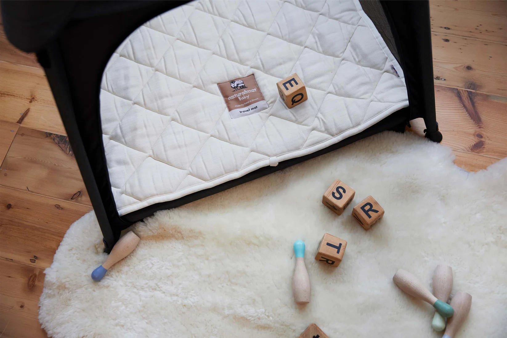 Handmade in Devon using organic & sustainable materials, this travel cot mattress is as versatile as it is comfortable. At home, the Travelmat is the perfect spot for tummy time, whereas on the road it provides a supremely comfortable and temperature-regulating overlay for your child’s existing travel cot mattress.. As with all of our mattresses, our travel cot mattress is encased in a naturally-fireproof cotton cover and finished with GREENFIRST® - an all-natural treatment made from eucalyptus, lavender and lemon extract - making them bed-bug and dust-mite resistant, perfect for children with allergies.