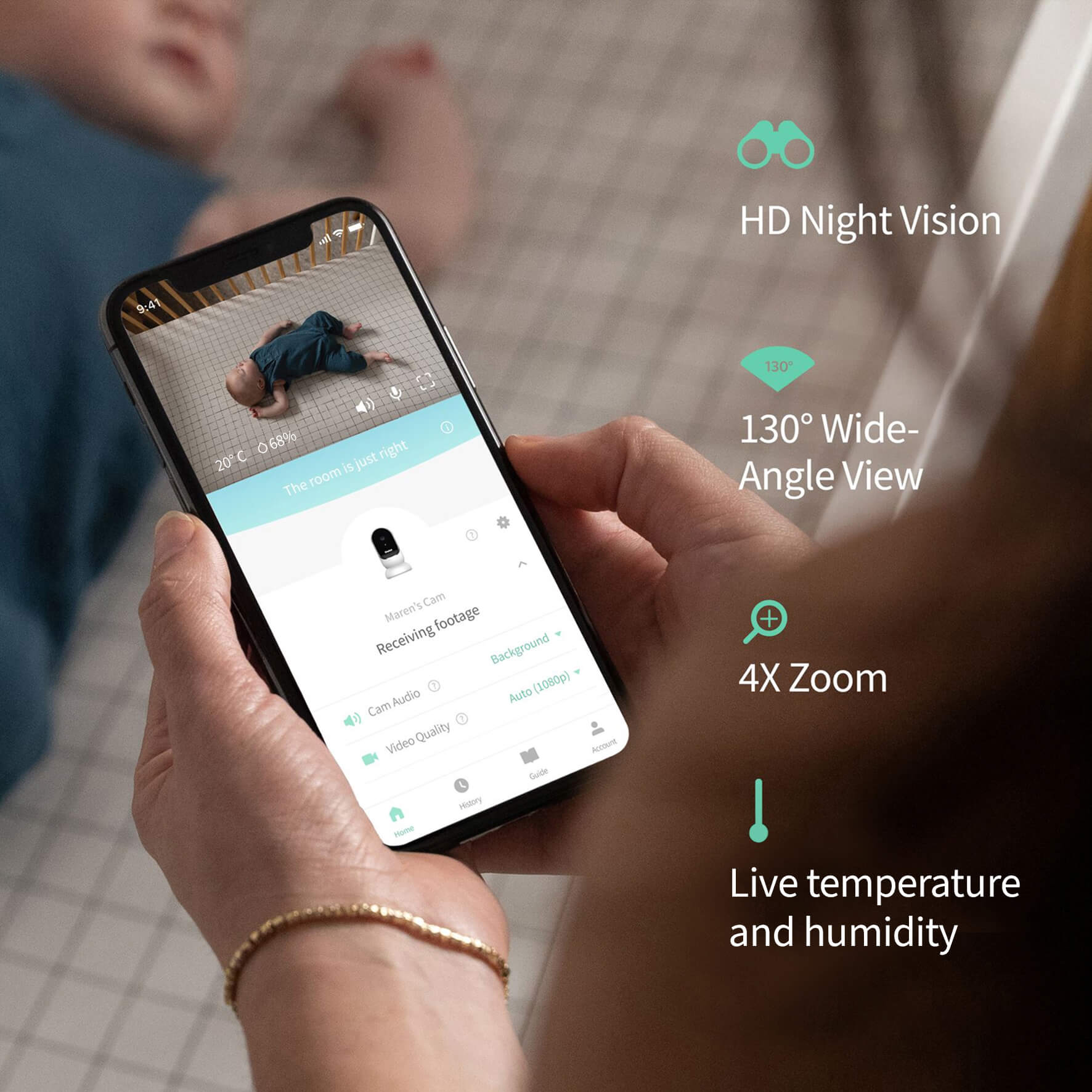 The ALL NEW Owlet Cam 2 lets you feel like you’re there, from anywhere. You will still be able to enjoy the features you loved from Cam 1, but now also enjoy video clips, cry notifications, and Predictive Sleep Technology through the Owlet Dream App. Relax with the peace of mind with AES 128-bit encryption, making the Owlet Cam 2 more secure than analogue monitors.