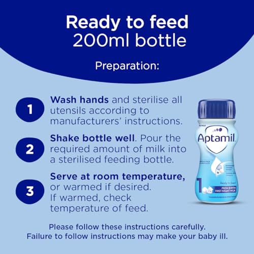 Aptamil stage 1 first infant milk liquid is suitable from birth onwards and if you are combination feeding or if your baby is not being breastfed. It contains unique blend of ingredients like GOS/FOS, galacto- and fructo-oligosaccharides and long chain polyunsaturated fatty acids (LCPs). It support your toddlers natural immune system.