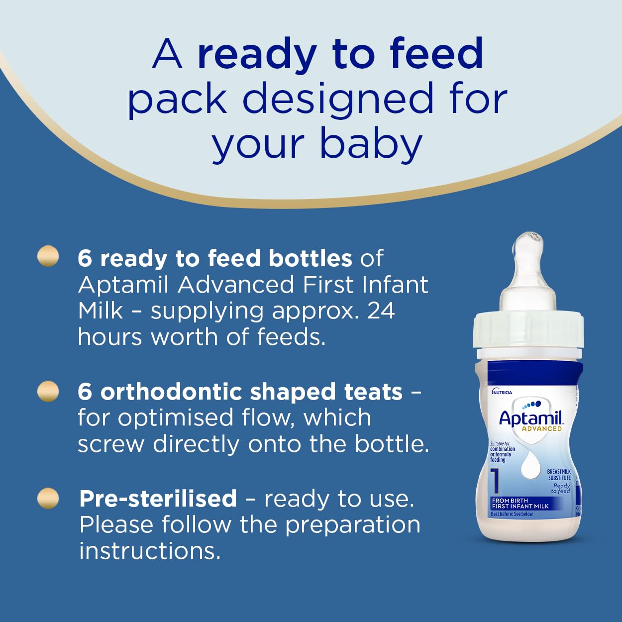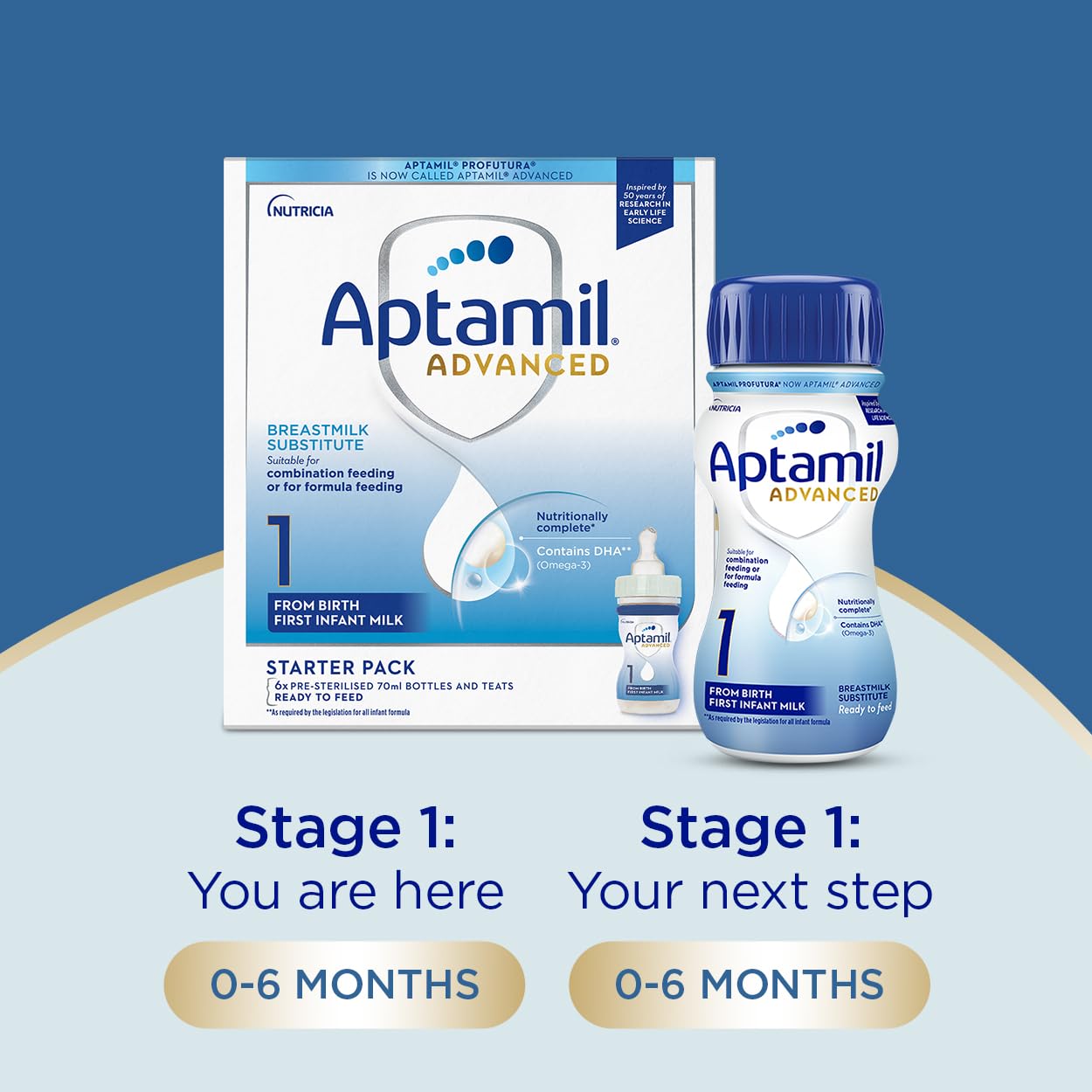 Aptamil Advanced 1 First Baby Milk Liquid Formula Starter Pack, 6x70 ml