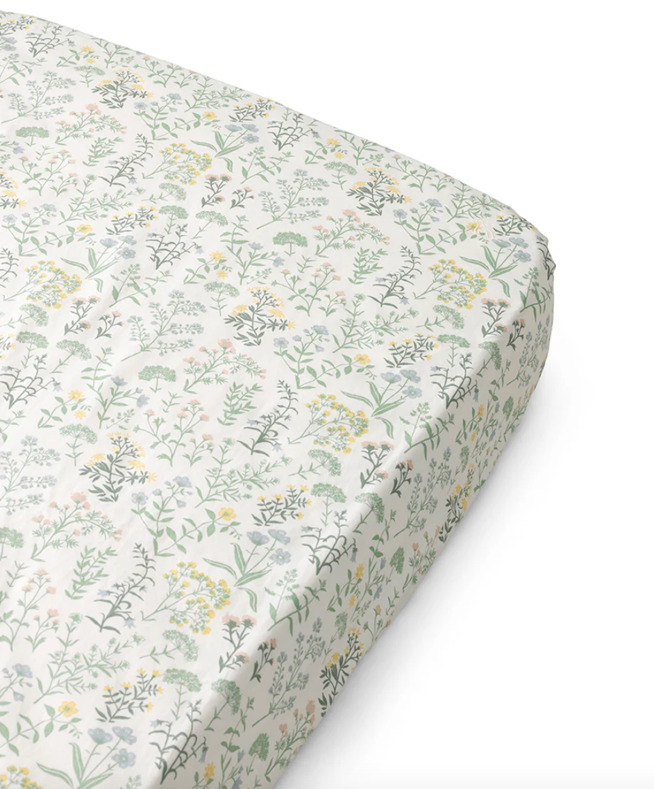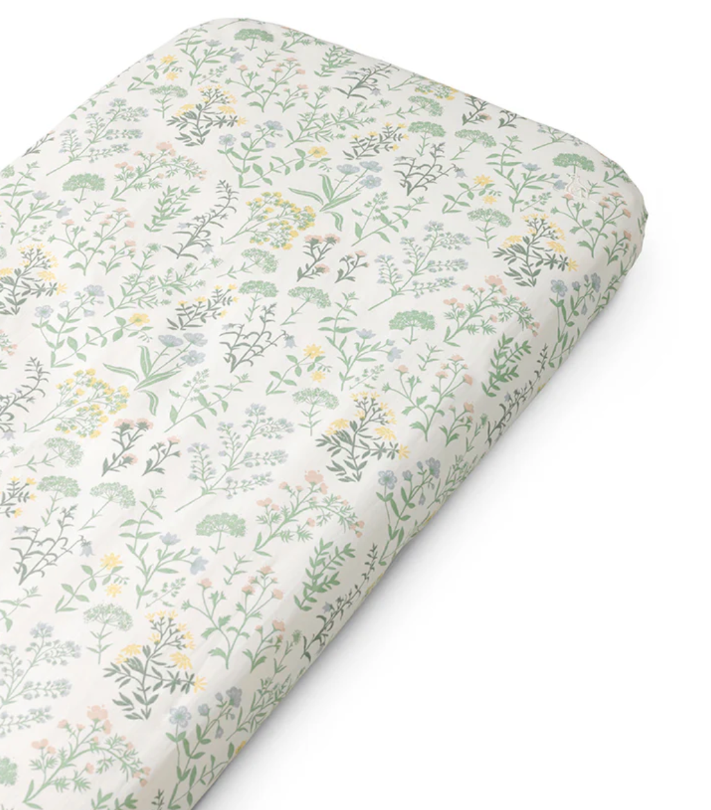 The Dear April Fitted Baby Sheet is made of 100% organic cotton percale. The dense percale weave is not only durable and beautiful to look at, but also lightweight and breathable. The bed sheet is pre-washed, which gibes a natural crinkled look and makes it incredibly soft against the skin, and it only hets softer the more it is used.